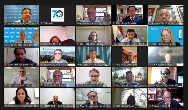 Rio de Janeiro, Brasil – Asunción, Paraguay, 19 de agosto de 2022 (PANAFTOSA/SPV-OPS/OMS)- La 48ª Reunión Ordinaria de la Comisión Sudamericana de Lucha contra la Fiebre Aftosa (COSALFA) comenzó hoy, y por segundo año consecutivo, de manera virtual. Con la presencia oficial de los 13 países miembros, la apertura oficial del evento estuvo a cargo del director del Centro Panamericano de Fiebre Aftosa de la Organización Panamericana de la Salud (PANAFTOSA/OPS), Dr. Ottorino Cosivi, la presidente Pro témpore de la COSALFA 47, Dra. Ximena Melón (SENASA Argentina), el presidente de la Fundación Servicios de Salud Animal (FUNDASSA), Dr. Daniel Prieto Davey y el presidente del Servicio Nacional de Calidad y Salud Animal (SENACSA), Dr. José Carlos Martin.