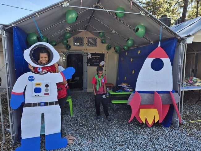 La OPS/OMS como parte del Clúster Salud, la Cruz Roja Hondureña y ADRA se unieron para crear una experiencia inolvidable para los niños en movilidad humana en la zona humanitaria de Machuca, Ocotepeque. Bajo el lema "Niños y niñas brillando con esperanza, alegría y salud", transformamos el espacio en un universo de fantasía, lleno de estrellas, planetas y una nave espacial que capturó la imaginación de todos.