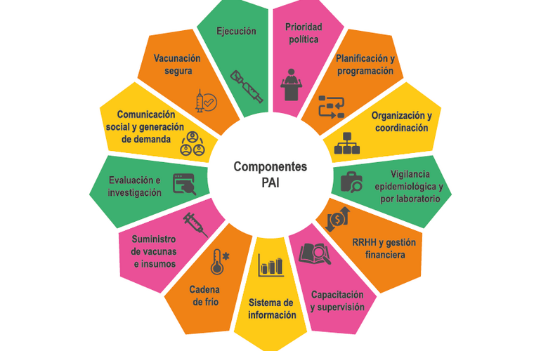 Esta herramienta permite autoevaluar el desempeño de cada uno de los componentes que conforman dicho programa, como ser la Evaluación y la Investigación; el suministro de vacunas e insumos, la Cadena de Frío, el Sistema de Información, entre otros. El detalle de todos los componentes se encuentra en el siguiente gráfico: