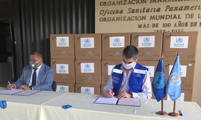 Esta donación se enmarca en las acciones de cooperación técnica entre OPS/OMS y el Estado dominicano para el fortalecimiento de las medidas de Prevención y Control de Infecciones (PCI) y así reducir el riesgo de infección y diseminación de la COVID-19 en la comunidad.