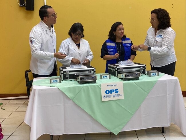Managua, 2 de mayo de 2024 (OPS/OMS).- En un esfuerzo por combatir la leishmaniasis, el Ministerio de Salud (MINSA) está ampliando la disponibilidad de los equipos de termoterapia en coordinación con la OPS/OMS. Esta nueva tecnología brinda una alternativa innovadora para tratar esta enfermedad, y mejorar el acceso al tratamiento, lo que permitirá a los pacientes tener mejores resultados en un corto período de aplicación y que puedan gozar de mejor salud y bienestar.