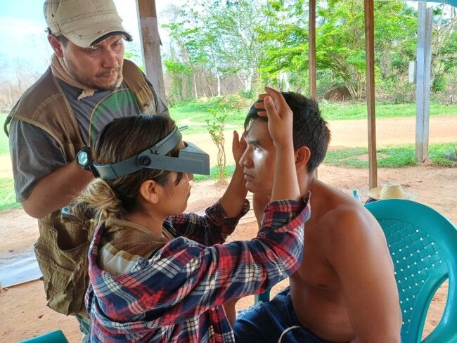Pando, Bolivia, 20 de noviembre de 2024 (OPS)- Una nueva travesía en Bolivia llevó a una misión de evaluadores a internarse en la Amazonía boliviana con el objetivo de identificar casos de tracoma folicular activo en menores de 1 a 9 años y casos de triquiasis tracomatosa en adultos. Más de 1.341 personas de siete comunidades indígenas de los pueblos Esse Ejja, Cavineño y Tacana fueron examinados en el contexto de las evaluaciones rápidas de tracoma. El tracoma es una enfermedad ocular que resulta de la infección por la bacteria Chlamydia trachomatis.