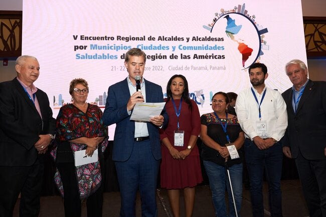 Igualmente, se destacó el valor de los Criterios regionales para Municipios, Ciudades y Comunidades Saludables para vertebrar la agenda de OPS con los gobiernos locales. Estos 30 criterios fueron construidos colectivamente por alcaldes y alcaldesas, redes de municipios saludables, ministerios de salud, academia y otros actores locales clave, y fueron adoptados en Panamá en el Encuentro de Alcaldes y Alcaldesas por MCCS de las Américas de 2022.