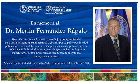 Hoy más que nunca, la mística de trabajo y compromiso del Dr. Merlin Fernández Rápalo, su honestidad y el amor por su país y por la salud pública internacional, brindan un ejemplo a las nuevas generaciones de profesionales de la salud pública, para abogar y luchar por lograr la cobertura y el acceso universal a la salud, para todos y todas, sin dejar a nadie atrás.