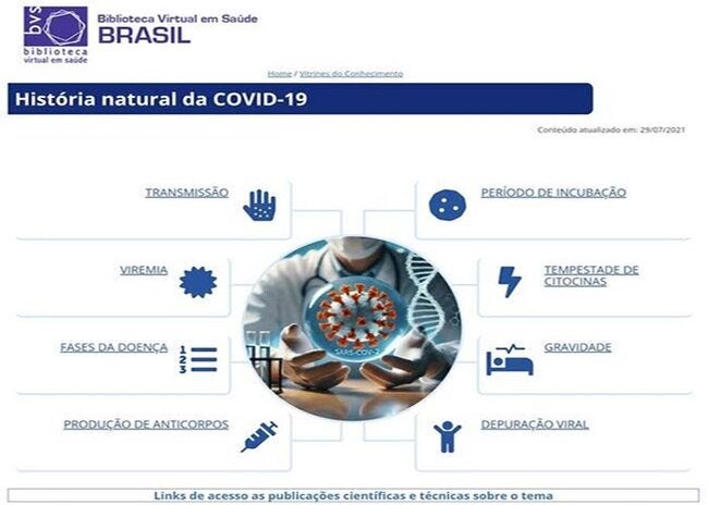 La Vitrina del Conocimiento sobre la Historia Natural de la Covid-19 se lanzó en la celebración del 20º aniversario de la Biblioteca Virtual en Salud del Ministerio de Salud de Brasil, transmitida a través del canal de YouTube de DataSUS. La Vitrina es producto de la cooperación técnica entre BIREME y la Secretaría de Ciencia, Tecnología, Innovación e Insumos Estratégicos de Salud del Ministerio de Salud de Brasil (SCTIE/MS), a través del Departamento de Ciencia y Tecnología (DECIT).