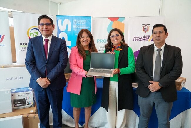 Quito, 21 de enero de 2026. “Estos equipos electrónicos fortalecerán la comunicación entre los vigilantes locales de al menos 19 comunidades y las unidades de salud en Carchi, Napo, Orellana, Pastaza, Morona Santiago, Zamora Chinchipe, Loja y Sucumbíos. La donación valorada en más de 187 000 dólares y destinada a 11 cantones beneficiará de manera directa a 66 000 habitantes de estas zonas”, explicó Sonia Quezada, representante de OPS/OMS en Ecuador, durante la entrega de esta tecnología a la vicepresidenta de la República, María José Pinto; y otras autoridades.