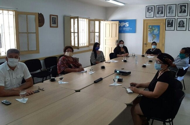 Para esta sesión se preparó un panel integrado por el Dr. Alberto Fernández, Jefe del Departamento Nacional del Adulto Mayor, Asistencia Social y Salud Mental del Ministerio de Salud Pública de Cuba (MINSAP); la Dra. Liliam Rodríguez, Directora del Centro de Investigaciones sobre Longevidad, Envejecimiento y Salud (CITED); y las profesoras Teresa Orosa y Laura Sánchez, Presidenta de la Cátedra de Estudios del Adulto Mayor de la Universidad de La Habana y miembro del Consejo Asesor de esta Cátedra, respectivamente. El panel sesionó desde la Representación de OPS/OMS en La Habana y contó con el acompañamiento del Dr. Duniesky Cintra, consultor de esta oficina.
