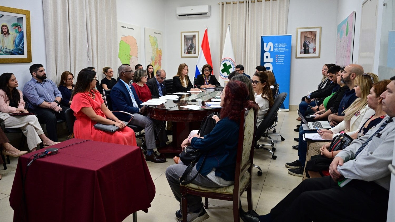 La reunión estuvo encabezada por el Jefe de Gabinete del Ministerio de Salud Pública y Bienestar Social (MSPBS), Juan Marcelo Estigarribia. Participaron la Representante a.i. de la OPS/OMS en Paraguay, Dra. Haydée Padilla, junto a su equipo técnico; representantes del Banco Mundial y del BID; directores generales del MSPBS; y, de manera virtual, el Director y asesores del Departamento de Sistemas y Servicios de Salud de la OPS.