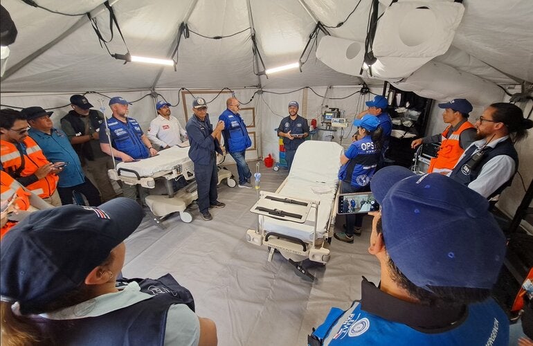 Añadió, además, que el trabajo de evaluación llevado a cabo se hizo junto con un grupo de observadores de otros países: “durante estos días, y unas sesiones que hemos tenido previas, se ha verificado que dispone de los procedimientos, equipos, guías, clínicas y, hoy en la visita de campo, que todo el despliegue del equipo médico de emergencia está alineado con esos estándares”, acotó de la Fuente.