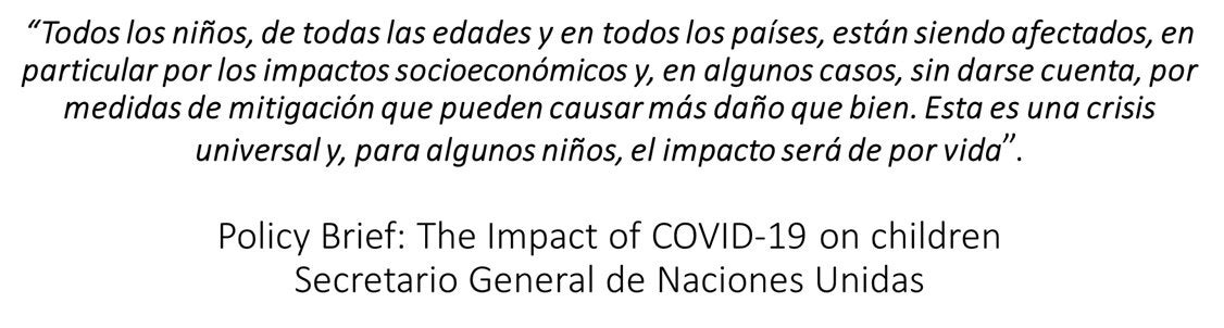 La epidemia ha alterado los componentes esenciales para el desarrollo infantil y del adolescente adecuado: buena salud, nutrición adecuada, atención receptiva, oportunidades para el aprendizaje, protección y seguridad.