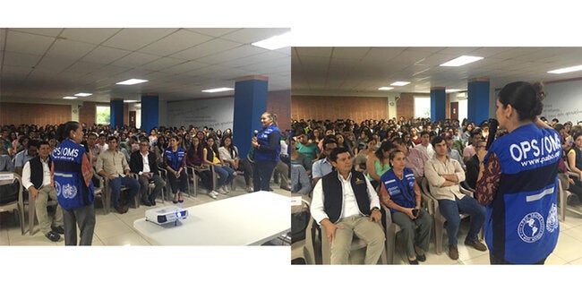 Un aproximado de 150 jóvenes de diferentes universidades participaron en el tema de comunicación de riesgos para que los mismos accionen y diseminen mensajes de prevención, de acuerdo a lineamientos oportunos para la reducción de la alta incidencia de dengue que se registra actualmente en el país.