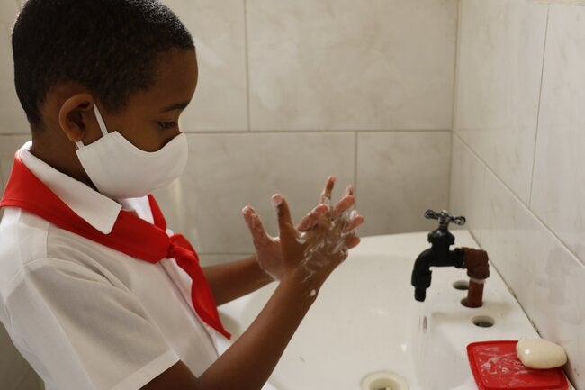 La Habana, 16 de junio de 2021 (OPS) — Uno de los sectores en los que más se ha desarrollado la cooperación técnica de la Representación de OPS/OMS en Cuba a lo largo del tiempo es el de Educación, y durante la pandemia no ha sido diferente. A través del Ministerio de este ramo (MINED) se han impulsado múltiples actividades enfocadas en la preparación del entorno escolar para evitar la transmisión de la COVID-19 y se han viabilizado las donaciones de insumos que resultan fundamentales para la respuesta a esta enfermedad.