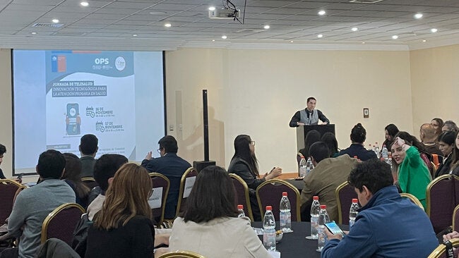 Providencia, Santiago de Chile, 16 y 17 de noviembre de 2023 (OPS).- En la capital chilena se reunieron los equipos de Atención Primaria de Salud (APS), de variadas comunas del país con el objetivo de conocer las experiencias en la implementación de “Telesalud”; herramienta tecnológica que busca gestionar de mejor manera la demanda por atención de salud y acercar la atención de salud de los usuarios de APS, a través de un sistema digital en línea para el pedido de horas médicas; “Telesalud” permite priorizar la atención según la necesidad de los usuarios de los centros de salud, pudiendo atender en primer lugar a los pacientes que más lo necesiten.