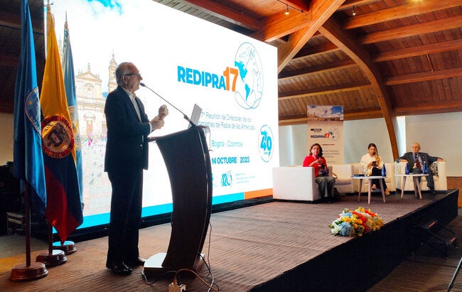 Bogotá, 23 de noviembre de 2023 (PANAFTOSA/SPV-OPS/OMS) - Durante la 17ª Reunión de Directores de los Programas de Rabia de las Américas, organizada por el Centro Panamericano de Fiebre Aftosa y Salu Pública Veterinaria de la OPS/OMS en Bogotá y que contó con la participación de 27 países de la región, el Ministro de Salud y Protección Social de Colombia, Guillermo Alfonso Jaramillo, reforzó su compromiso en la lucha por la eliminación de la rabia y su aspiración para que Colombia se convierta en el segundo país del mundo, por detrás de México, en obtener la verificación de la OPS/OMS de libre de rabia humana transmitida por perro.