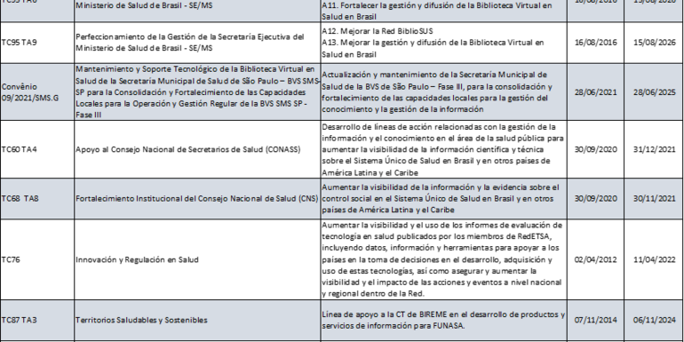 A continuación, se presentan los TCs con los que BIREME contribuye y una breve descripción.