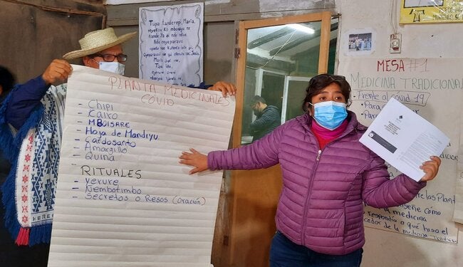 Kereimba Iyambae (Gutiérrez), Chaco boliviano, 22 junio 2022 (OPS)- La certificación de médicos tradicionales guaraní, la conformación de consejo de medicina tradicional municipal, incorporación de representantes de medicina tradicional en la región del Chaco, el reconocimiento a los médicos tradicionales ancestrales guaraní e implementar laboratorios artesanales de medicina tradicional son algunas de las conclusiones a las que llegó la Asamblea del Pueblo Guaraní (APG), en el encuentro de Diálogo de lucha contra el COVID-19 realizado en los últimos días. El documento firmado por los capitanes mayores será entregado a las autoridades de todos los niveles de gobierno: Nacional, departamental, regional y municipal.