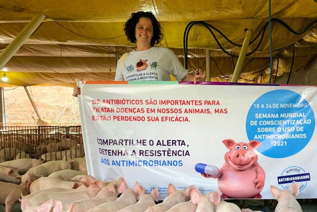 Con el apoyo de PANAFTOSA, los establecimientos de producción animal y de comercio de productos para la salud animal tienen la oportunidad de hacer difusión y concientización de esta problemática a través de material producido para este fin. Material divulgativo como indumentaria, posters o infografías ilustrativas y accesorios para enfatizar las buenas prácticas en el uso de medicamentos veterinarios como estrategia para prevenir y contenerla RAM. La campaña siguió el lema de este año: “Corre la voz, frena la resistencia a los antimicrobianos”.