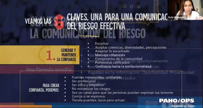 Bogotá, febrero 23 de 2021. Con el objetivo de construir estrategias comunicativas y pedagógicas para la población migrante, refugiados, retornados y población de acogida, la OPS/OMS Colombia, con el apoyo financiero de USAID, realizó entre enero y febrero 13 talleres virtuales sobre Comunicación del Riesgo en tiempos de pandemia por la Covid-19.