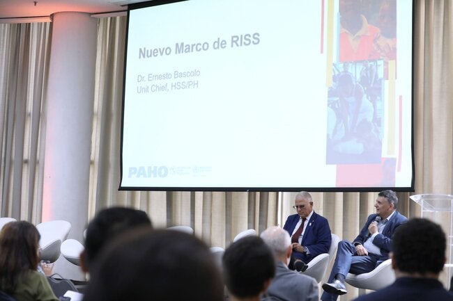 En este contexto, Ernesto Báscolo, jefe de la Unidad de Atención Primaria de Salud y Prestación Integrada de Servicios de la OPS, presentó el nuevo marco conceptual de Redes Integradas e Integrales de Servicios de Salud (RISS) y coordinó un taller colaborativo en el que se analizaron los cuatro dominios clave de la propuesta, con aportes de representantes técnicos de ministerios de salud, gestores subnacionales y académicos de la Región.