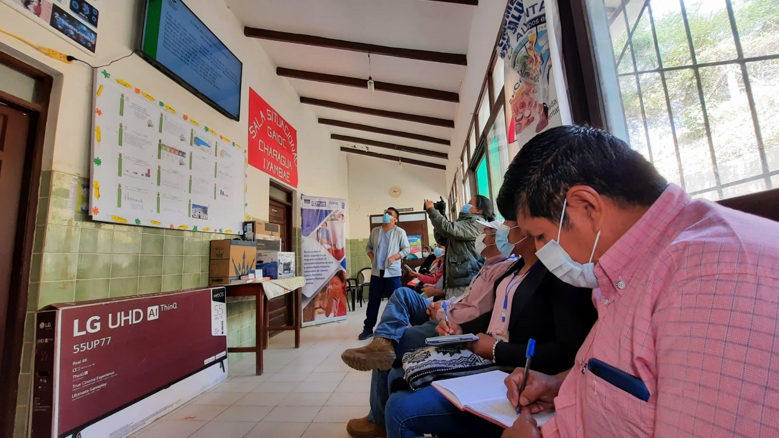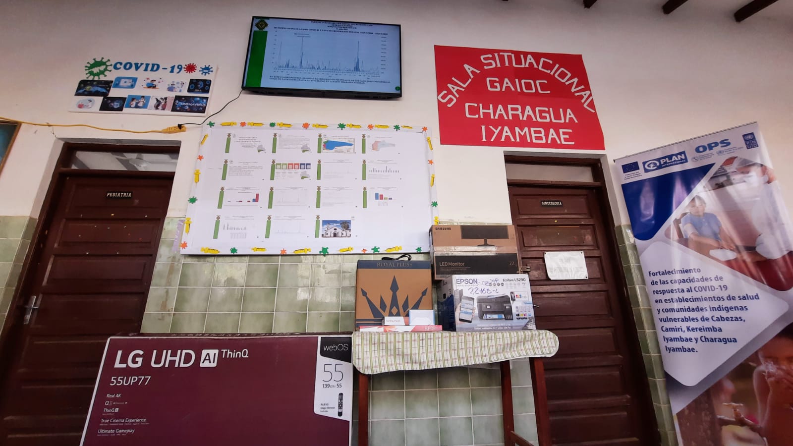 La OPS, PNUD y Plan Internacional realizaron la dotación de equipos completos para la instalación de salas situacionales en el municipio de Cabezas, las autonomías indígenas de Kereiba y Charagua Iyambae y en la Red de Salud Cordillera en Camiri. Cada establecimiento recibió un televisor de 55 pulgadas, proyector data, impresora, computadora completa para la sistematización de datos y parlantes. En las próximas semanas se instalará una 5ta sala para uso exclusivo del hospital municipal de Camiri.