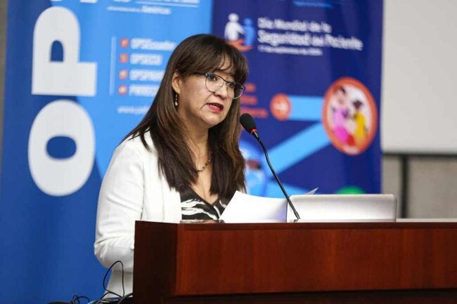 Quito, 24 de septiembre de 2024. En el contexto del Día Mundial de la Seguridad del Paciente, la representante de la OPS en Ecuador, Sonia Quezada, hizo un llamado a la acción a pacientes, personal de salud, responsables políticos y gestores en la atención de salud, para informarse, implicarse y trabajar de manera articulada para velar por la seguridad del paciente y mejorar su salud.