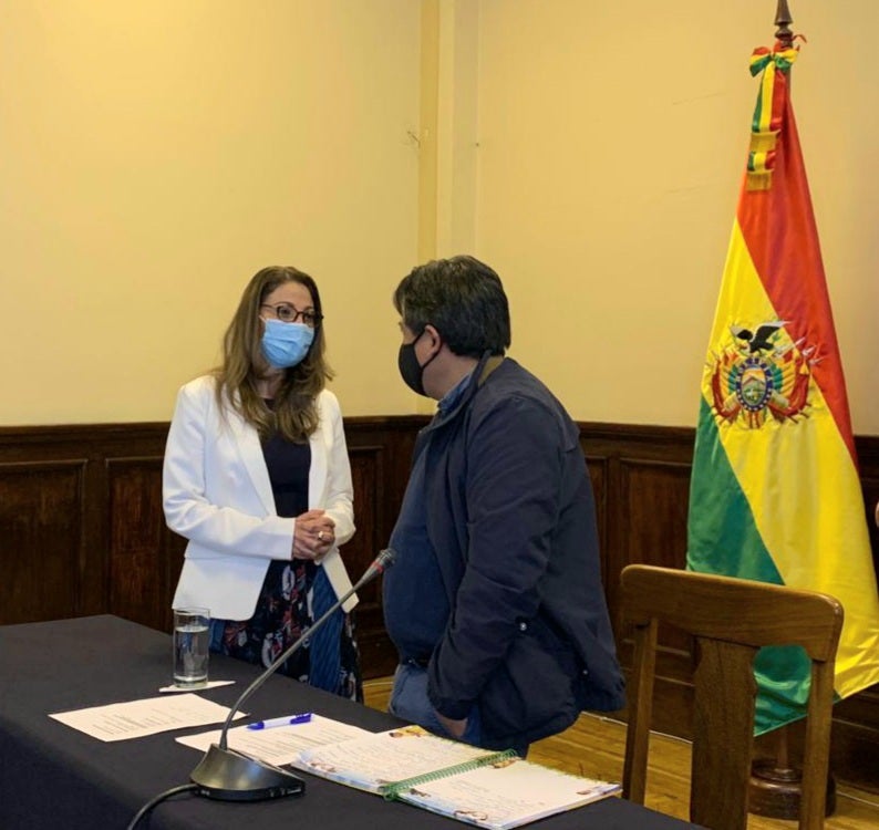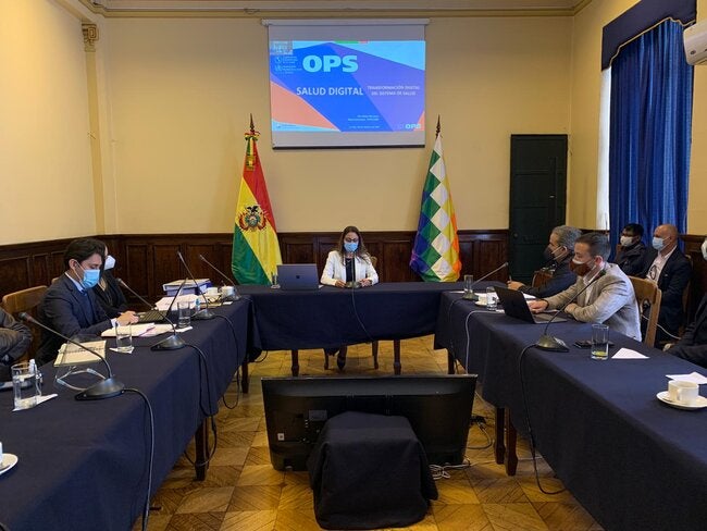 La Paz, 26 de febrero de 2021 (OPS/OMS)- La Vicepresidencia del Estado Plurinacional de Bolivia organizó el primer taller sobre "Transformación Digital del Sistema de Salud e Interconectividad de las redes de salud” en La Paz e invitó a la Representante OPS/OMS Dra. Alma Morales como expositora para presentar “soluciones tecnológicas para transformar el sistema de salud”. En la ocasión, la Dra. Morales tuvo la oportunidad de saludar protocolarmente al Sr. Vicepresidente, David Choquehuanca Céspedes.