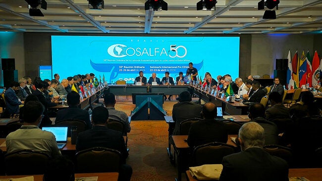 Río de Janeiro, 26 de abril de 2024 (PANAFTOSA/SPV-OPS/OMS) – Los representantes oficiales de los sectores público y privado de los 13 países que conforman la Comisión Sudamericana para la Lucha contra la Fiebre Aftosa (COSALFA), clausuraron hoy la quincuagésima Reunión Ordinaria, celebrada los días 25 y 26 de abril en la ciudad de Río de Janeiro, Brasil.