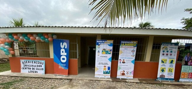 Lérida, Tocoa, Colón. 25 de mayo de 2021. (OPS/OMS). El Director de la Región de Colón, el Dr. Allan Lagos, junto a representantes de la comunidad y la OPS/OMS dieron por inaugurados los servicios del establecimiento de salud (CIS) que fueron interrumpidos después que resultó severamente afectado tras el paso de los huracanes Eta e Iota. El CIS brinda atención a un aproximado de 5,000 habitantes que a partir de la fecha serán atendidos en instalaciones dignas y equipadas en el marco del proyecto “Respuesta en salud a la Emergencia por la Depresión Tropical Eta en Honduras”, con recursos del Fondo Central de Respuesta a Emergencias de Naciones Unidas (CERF por sus siglas en inglés).