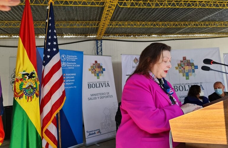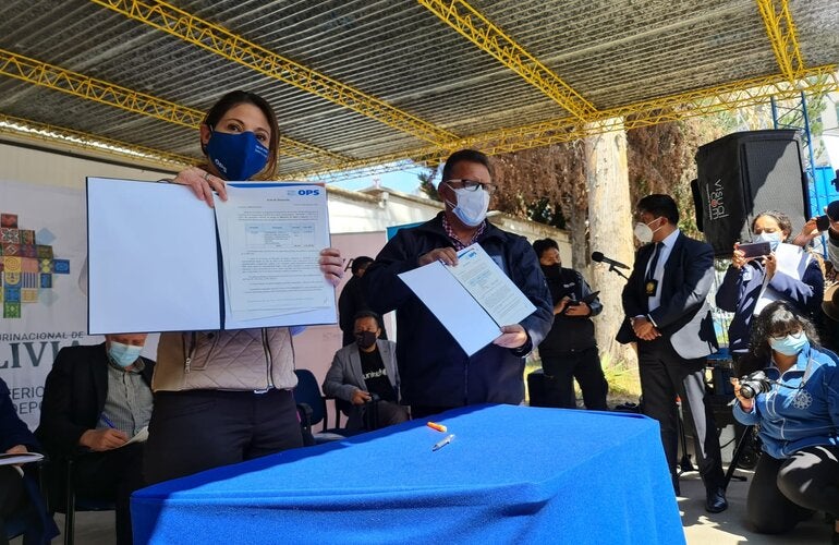 La firma de actas de entrega del donativo tuvo lugar en instalaciones de INLASA con la participación en representación del Estado Plurinacional de Bolivia del Vice Canciller, Benjamín Blanco Ferri, el representante del Ministerio de Salud y Deportes; en representación del Gobierno de los Estados Unidos, la Encargada de Negocios de Estados Unidos, Charisse Phillips; la Representante de la Organización Panamericana de la Salud/Organización Mundial de la Salud en el país, Alma Morales; el Representante del Fondo de las Naciones para la Infancia Unidas UNICEF, Rafael Ramírez; entre otros.