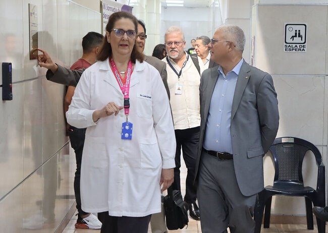 Caracas, 26 de septiembre (OPS/OMS).- En una visita realizada a la Clínica de Prevención del Cáncer, en el centro de Caracas, funcionarios de la Organización Panamericana de la Salud (OPS) intercambiaron experiencias sobre el abordaje a esta enfermedad en el país con la directora de este centro médico, Laura Salvestrini, y el gerente general de la Sociedad Anticancerosa de Venezuela (SAV), Juan Saavedra.