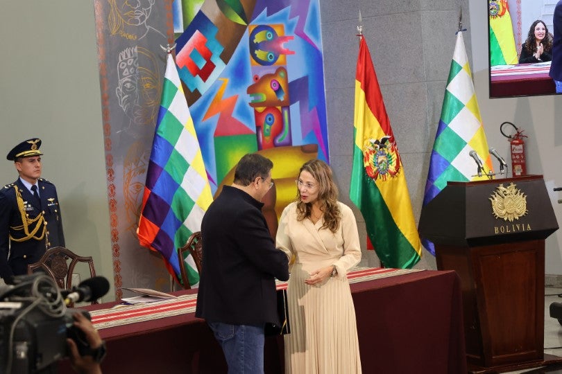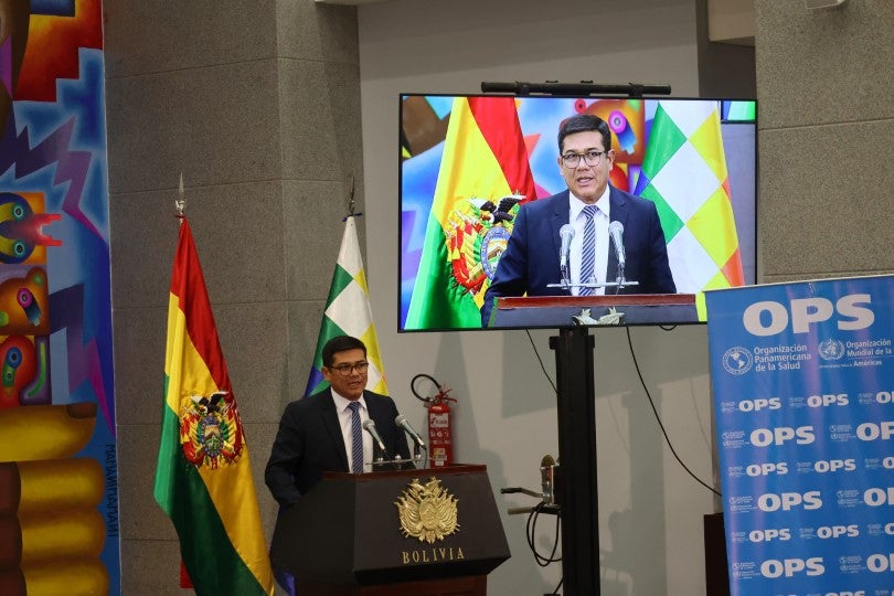 La Paz, Bolivia, 26 de octubre de 2023 (OPS)- El Estado Plurinacional de Bolivia recibió hoy un reconocimiento de parte de la Organización Panamericana de la Salud/Organización Mundial de la Salud (OPS/OMS) por los esfuerzos para mantener su certificación por la eliminación de polio, sarampión, rubéola y síndrome de rubéola congénita y por proteger a la población en situación de vulnerabilidad como son los niños y niñas bolivianas contra esas enfermedades.