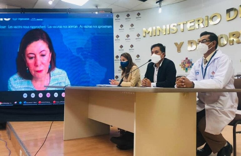 La Paz, 26 de noviembre de 2021 (OPS)- El Estado Plurinacional de Bolivia ha sido destacado por la Organización Panamericana de la Salud (OPS) por haber priorizado la vacunación contra la COVID-19, comenzando por el liderazgo del Presidente Luis Arce Catacora, así como por la integración de diferentes ministerios tales como Relaciones Exteriores, Economía y Finanzas y Salud y Deportes, facilitando los procesos de inversión, disponibilidad oportuna de vacunas y suministros, movilización de recursos, flexibilización de los procesos regulatorios y de comunicación social.