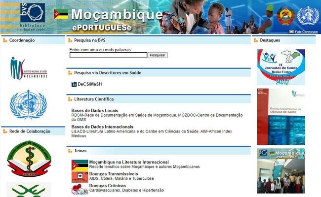 - Actualizar el portal de la BVS Mozambique, con información/documentos en salud, integrando otras fuentes de información de salud;