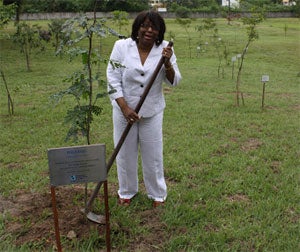 Al finalizar su visita, la Directora plantó un árbol de la especie "Pau-Brasil" en el jardín de PANAFTOSA en conmemoración a su primera visita a la sede.
