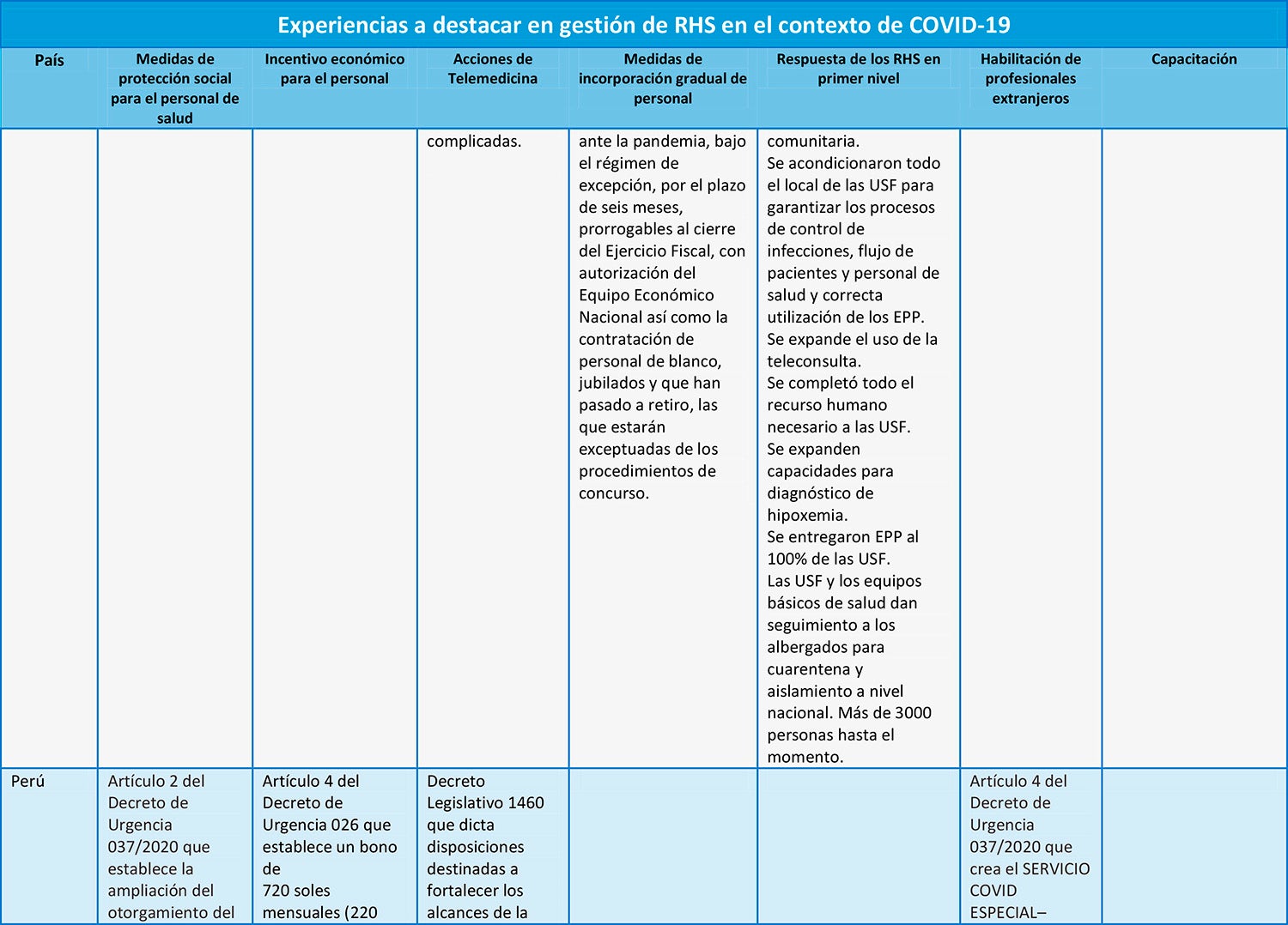 Lima, Perú, 27 de julio de 2020 (OPS/OMS) - Durante el desarrollo de la pandemia de COVID-19, las autoridades de los países sudamericanos han estado implementando diversas estrategias en materia de Recursos Humanos para enfrentar la crisis sanitaria, según su realidad específica, capacidades y potencialidades.
