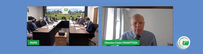 Rio de Janeiro, Brasil, 27 de mayo de 2021 (PANAFTOSA/SPV-OPS/OMS)- El director de PANAFTOSA, Dr. Ottorino Cosivi, participó de la celebración del Reconocimiento de Nuevas Zonas Libres de Fiebre Aftosa Sin Vacunación a Brasil, otorgado por la Organización Mundial de Sanidad Animal (OIE).