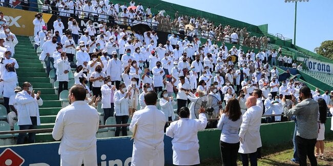 - El elemento clave de la implementación de esta estrategia es el personal de salud; en ese contexto, OPS participó de un acto que encabezó el gobernador Rutilio Escandón Cadenas, en la que se reconoció la labor que el personal de salud realiza en toda la entidad, incluso en los lugares más alejados, para atender de manera profesional y humana a las y los pacientes con esta enfermedad, tanto en los hospitales como casa por casa, el acto consistió de una salutación a brigadistas del programa de Atención Domiciliaria COVID-19 en el estadio olímpico de Tapachula.
