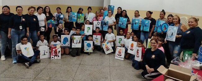 La actividad, que en esta ocasión incluyó a 25 niños, también tomó en cuenta a los padres, que recibieron un taller de crianza respetuosa mientras sus hijos participaban en siete dinámicas distintas para aprender a identificar sus emociones. En la jornada de la tarde, todos se unieron en una actividad de arteterapia guiada, y con lienzos y pinceles representaron gráficamente distintas emociones.