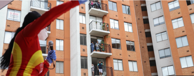 La iniciativa Ruta del Movimiento proporciona sesiones gratuitas de actividad física, dirigidas por instructores capacitados, en espacios exteriores tales como las zonas comunitarias de los edificios de apartamentos, lo que permite a los residentes seguirlas desde sus ventanas, balcones y terrazas y participar en ellas a una distancia segura. Las ubicaciones también incluyen los garajes o los jardines frontales, siempre que pueda mantenerse la distancia de seguridad entre los participantes. Desarrollada por el Ministerio del Deporte y el IDRD, y financiada mediante fondos municipales o regionales, la iniciativa se ha ampliado más allá de Bogotá para llegar hasta la población de al menos 15 ciudades del país, en beneficio de unas 18 000 personas.