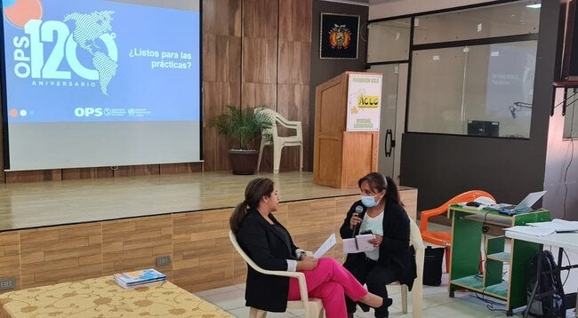 Sucre, Chuquisaca, octubre de 2022 (OPS)- Estar frente a una cámara y un micrófono puede ser intimidante, pero cuando se tiene el rol de vocero o portavoz y la responsabilidad de comunicar sobre la importancia y los beneficios de las vacunas, el entrenamiento es fundamental. Bajo esa premisa, pediatras, miembros del Comité Departamental de Inmunización (CDI), personal de salud a cargo de jefaturas de establecimientos de salud de 1er, 2do y 3er nivel y el equipo del Programa Ampliado de Inmunización (PAI) del Servicio Departamental de Salud (SEDES) de Chuquisaca, personal médico y administrativo de los municipios de San Lucas, Culpina y Poroma fueron entrenados en comunicación efectiva sobre vacunas.