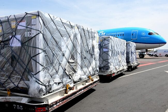 28 de mayo de 2021, Ciudad de México – el segundo embarque que entrega COVAX al país arribó ayer al Aeropuerto Internacional de la Ciudad de México (AICM), conteniendo 2,229,600 dosis de biológicos envasados de AstraZeneca.
