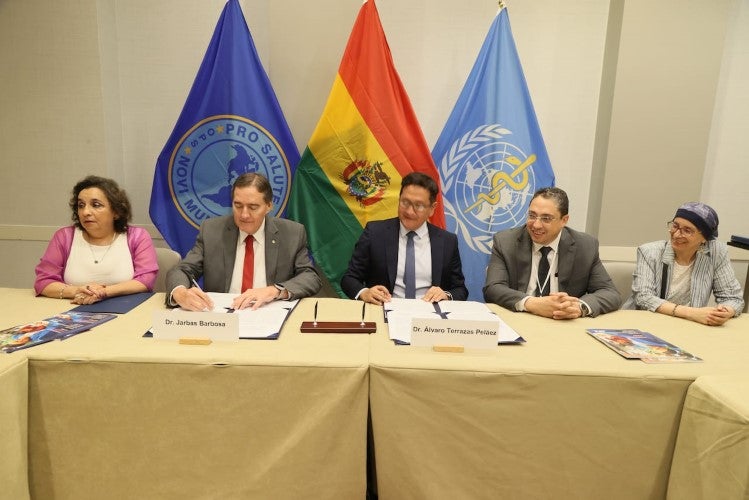 Washington D.C (EE.UU) y La Paz (Bolivia), 28 de junio de 2023 (OPS)- La Organización Panamericana de la Salud (OPS), representada por su Director el Dr. Jarbas Barbosa da Silva Jr., y el Estado Plurinacional de Bolivia, representado por el Viceministro de Gestión del Sistema de Salud del Ministerio de Salud y Deportes (MSyD) Dr. Álvaro Terrazas Peláez, en nombre y delegación de la Ministra de Salud y Deportes, María Réene Castro, firmaron en Washington DC la Nota Estratégica que acompaña el documento de la Estrategia de Cooperación País (ECP) 2023 – 2027 que permitirá la implementación de una visión estratégica de mediano plazo, para dirigir las acciones de cooperación en y con el Estado Plurinacional de Bolivia, en el contexto del cumplimiento de cinco prioridades nacionales de salud definidas participativamente y armonizadas con marcos de planificación nacional y compromisos regionales y globales.