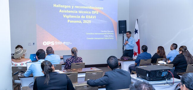 Panamá, 28 de agosto de 2025 (OPS/OMS) — Con el objetivo de fortalecer el Programa Ampliado de Inmunizaciones (PAI) y garantizar la seguridad de la población, el Ministerio de Salud (MINSA) de Panamá, en colaboración con la Organización Panamericana de la Salud/Organización Mundial de la Salud (OPS/OMS), concluyó la misión internacional que acompañó el análisis situacional del sistema de vigilancia de Eventos Supuestamente Atribuibles a la Vacunación o Inmunización (ESAVI).