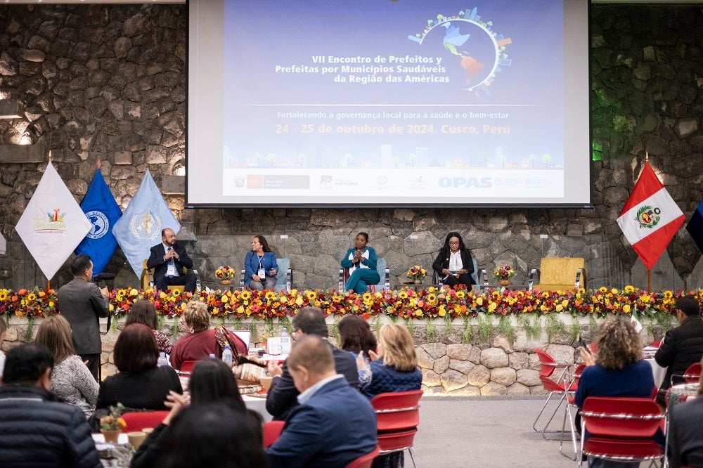 El VII Encuentro de Alcaldes y Alcaldesas por Municipios Saludables de las Américas, organizado por la OPS, reunió en Cusco los días 24 y 25 de octubre a más de 250 participantes (entre ellos, más de cien alcaldes y alcaldesas, además de representantes municipales y nacionales y de redes de municipios saludables) de 18 países de la Región. En el evento se destacó el papel clave que tienen los gobiernos locales en la promoción de la salud y el bienestar de las personas y las comunidades, así como en el abordaje de las inequidades en salud, mediante el trabajo entre sectores y la participación comunitaria y considerando específicamente a las poblaciones en situación de vulnerabilidad.