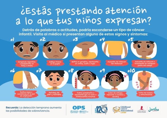 La OPS señala que los niños son diferentes de los adultos por lo que, de manera general, es importante, tomar acción cuando se detecta cualquier signo o síntoma diferente de lo normal. Aunque el cáncer pediátrico no es prevenible, el objetivo de lograr una detección temprana puede ser lograda por profesionales de la salud que hacen una historia clínica meticulosa, un buen examen médico y que escuchan a los padres.