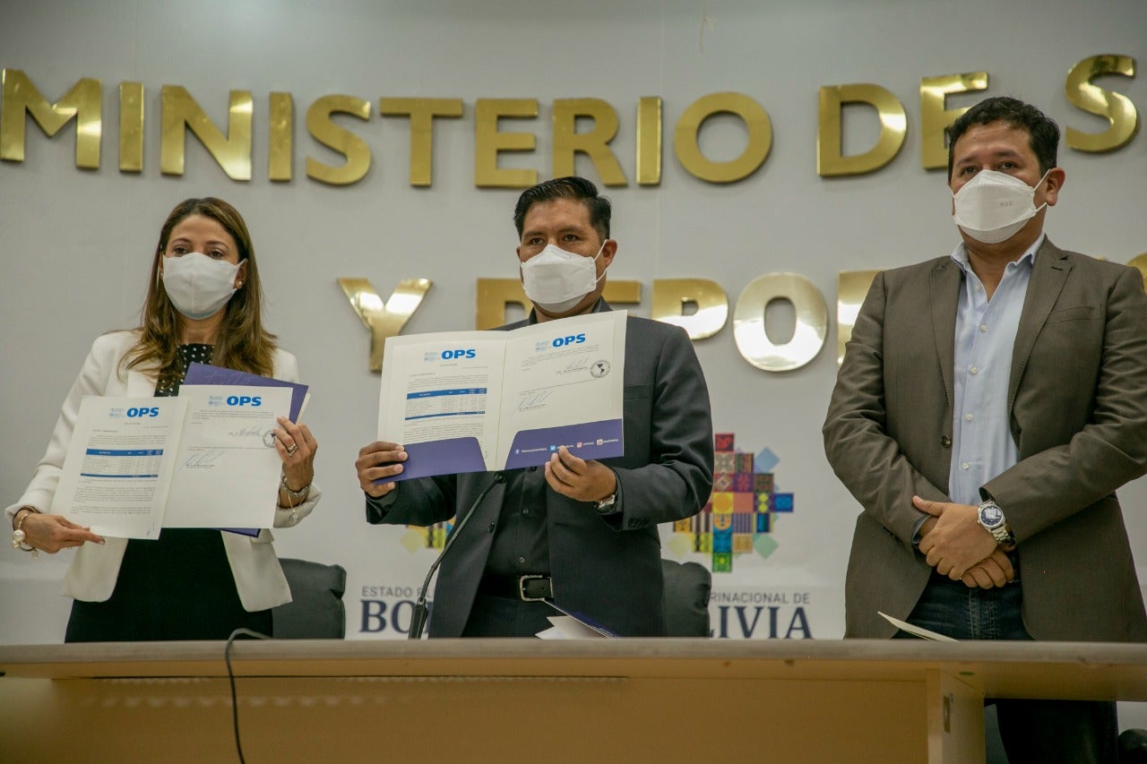 Con la participación del ministro de Salud y Deportes, Jeyson Auza, el viceministro de Gestión Sanitaria del Sistema de Salud, Álvaro Terrazas Peláez, la representante de la OPS/OMS, Alma Morales, el asesor internacional de Sistemas y Servicios de Salud, Julio Pedroza, otras autoridades y la prensa, se realizó la entrega de la donación en instalaciones del Ministerio de Salud y Deportes.