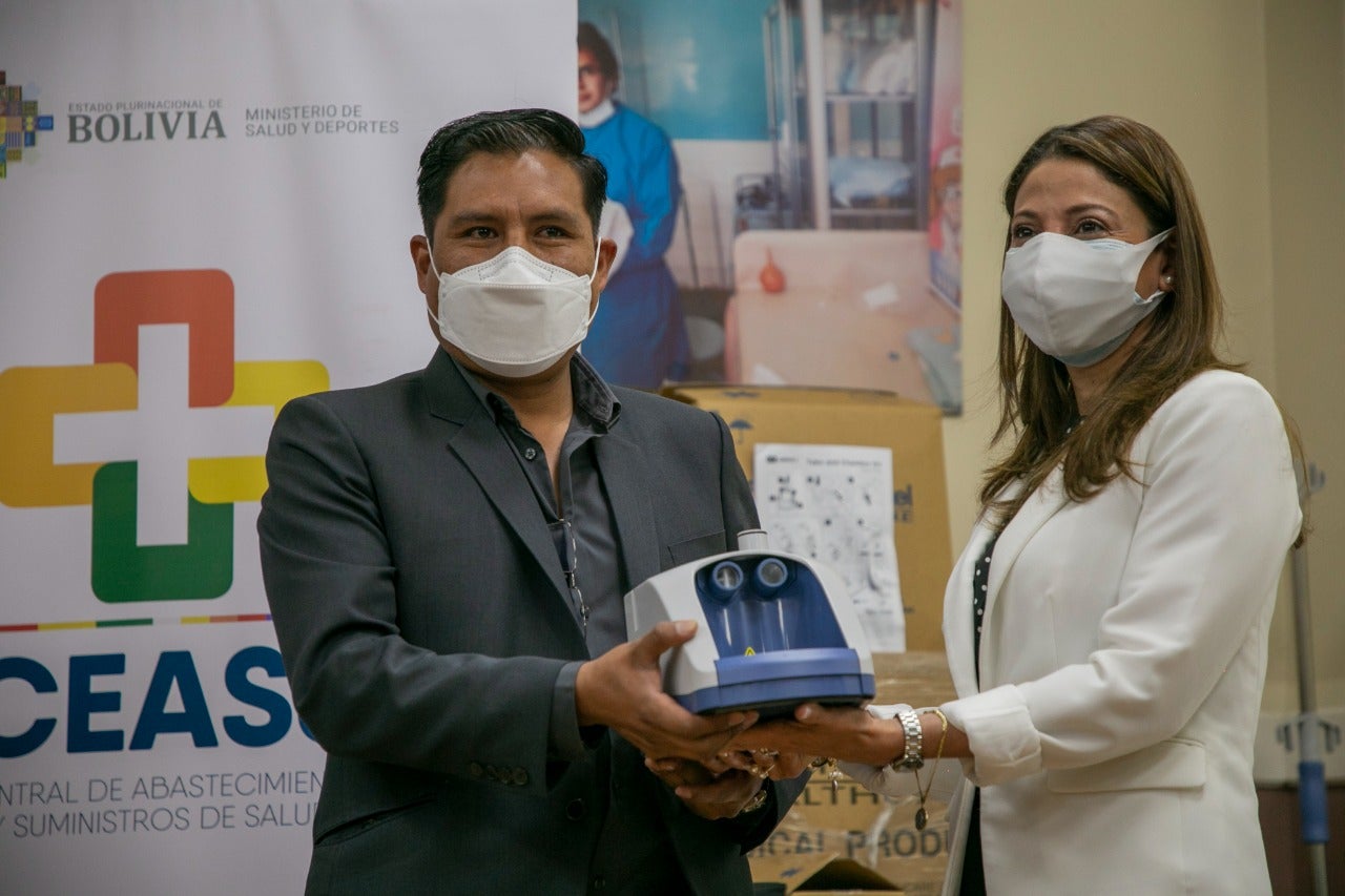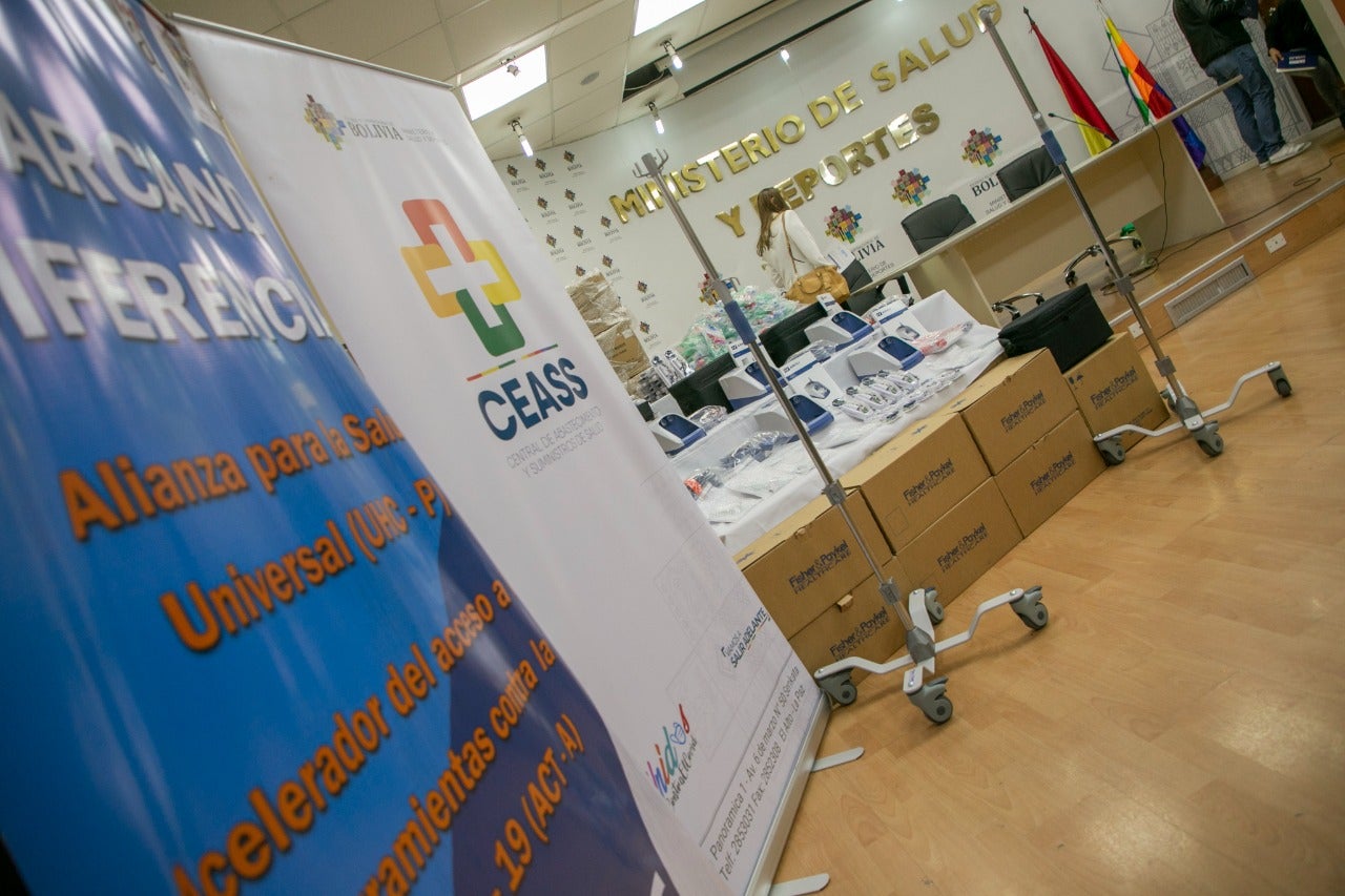 La representante de la OPS/OMS, Alma Morales dijo que este donativo es parte de una amplia iniciativa que desarrolla la OMS, junto a diversos socios del desarrollo, en apoyo al Ministerio de Salud y Deportes de Bolivia denominada ACT y UHC-P (Universal Health Coverage Partnership por su sigla en inglés) que está vinculada a garantizar el acceso y la cobertura a la salud universal, a través del fortalecimiento del primer nivel de atención para mejorar su capacidad resolutiva, en el contexto de la pandemia por COVID-19.