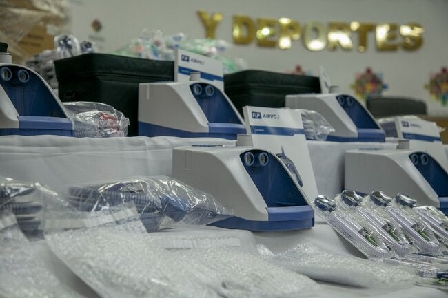 En la oportunidad, se entregó un lote de 20 equipos de cánula nasal de alto flujo (CNAF), 400 cánulas nasales de oxígeno, 20 porta botellas de oxígeno, 400 kit de tubo y cámara airspiral, 20 medidores de alto flujo, 6.784 mascarillas Ventury, y 16.195 bolsas reservorio.