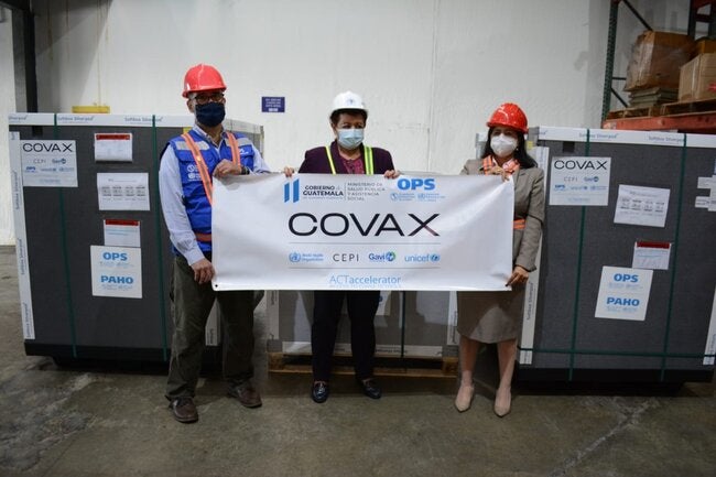 Esta entrega completa la primera ronda de asignación de 724,800 dosis que forma parte de los compromisos adquiridos por el Mecanismo COVAX para los primeros meses de este año con Guatemala.