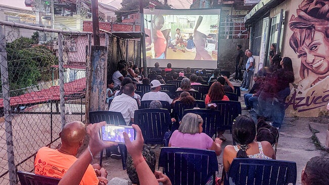Caracas, 3 de julio de 2025 (OPS/OMS).- La salud mental fue el tema central de los cortometrajes de salud que se exhibieron al aire libre en la comunidad de La Fila (San Agustín del Sur), una actividad en la que la Organización Panamericana de la Salud estuvo presente junto a representantes del Ministerio del Poder Popular para la Salud (MPPS) y del Circuito Gran Cine.